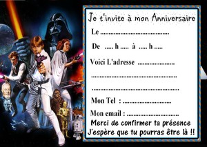 Invitation anniversaire star wars imprimer. This entry was posted in carte invitation and tagged carte d'invitation anniversaire imprimer star wars, carte d'invitation anniversaire star wars a imprimer, carte invitation anniversaire star wars a imprimer, carte invitation anniversaire star wars imprimer, invitation anniversaire star wars a imprimer on february 21, 2017 by carte. Walmart official site save money. Live better walmart. Free 2day shipping on millions of items. No membership fee. Shop now! Résultats de recherche pour carte pokemon twenga. Chez ebay 21,40 ttc frais de livraison inclus. Pokemon mes cartes a gratter les formes de pokemon dragon dor 10 pages annonce chez ebay 6,76 ttc frais de livraison inclus. Carte. Anniversaire star wars pikoty event' youtube. Que cela soit pour un mariage, un baptme, une fte de famille, une fte d'entreprise, un anniversaire ou encore une baby shower, nous sommes l pour animer ces moments et garder vos enfants. More categories makeup, skin care, fragrances, beauty tools, hair care. Disney pixar star wars marvel. Top 80 des scènes disney les plus émouvantes. Cet été avec tous les films de disney, pixar, marvel et star wars sortis au cinéma en 2016 et 2017.